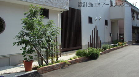 テーマ:市の政策「緑」に従事してデザイン ≪個人邸≫洋風タイプ 緑の条例地域 コンクリートブロック積 車庫土間コンクリート金ゴテ仕上げ カーポート 機能門柱 門扉片扉 化粧ブロック階段 アルミフェンス |