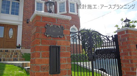 テーマ:東京の輸入住宅「洋館の庭」≪個人邸≫洋風タイプ アンティーク調タイプ コンクリートブロック積 塗装塗り壁仕上げ 古レンガ階段 アンティークレンガ門柱 アプローチ自然石貼 門扉 ポスト 表札 |