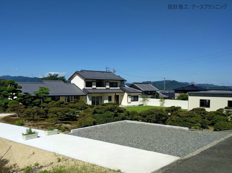 道路側の塀自然豊かな環境と、和風住宅の品を損なわない白を基調としたすっきりしたデザイン。外部の視線を防ぎます。 ![]() |