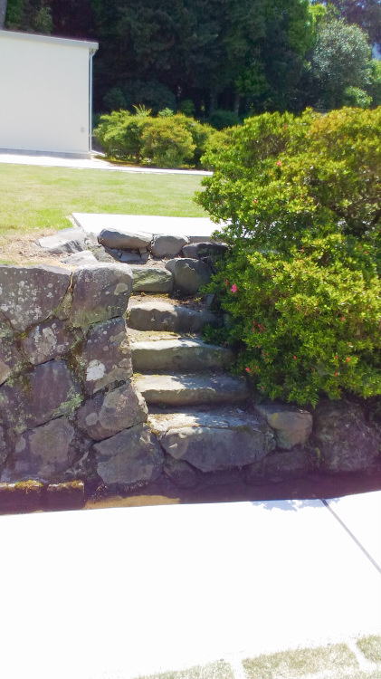 先祖の伝統先々代から受け継いだお庭の石垣、石の階段をすべて撤去せず、一部の残して今のデザインに組み込み、昔の伝統の技が作品に見える様な感じで引き立てます。